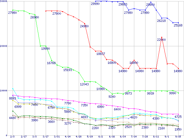 メモリ主要製品の最安値推移
