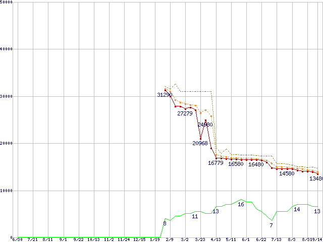 | Athlon 64 X2 4800+ (2.5GHz,L2 512KB×2,TDP65W)の価格推移 | | | (2006年6月30日~2007年9月14日) |