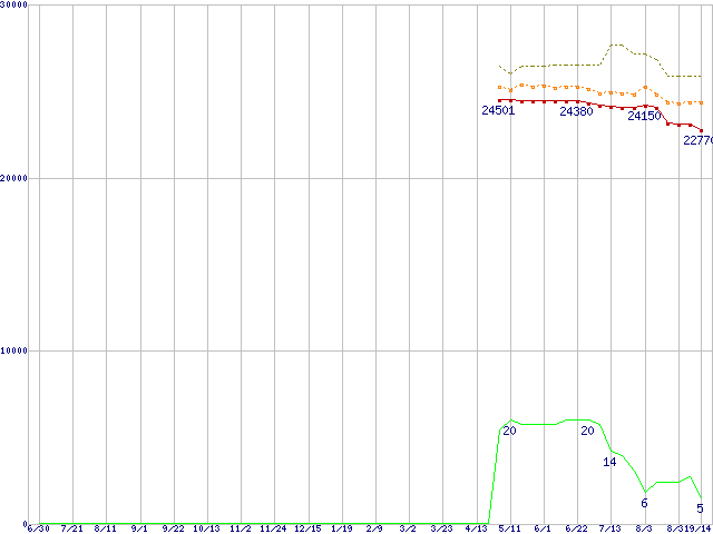 | Core 2 Duo E6420 (2.13GHz,L2 4MB)の価格推移 | | | (2006年6月30日~2007年9月14日) |