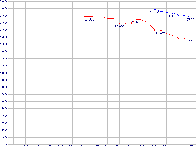 FSB 800MHz対応Core 2 Duo向けSocket (FSB 800MHz,Dual Core,EM64T対応)の最安値推移