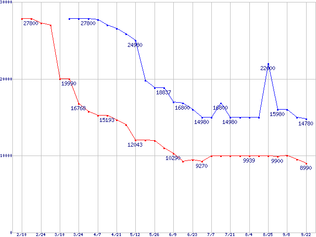 メモリ主要製品の最安値推移