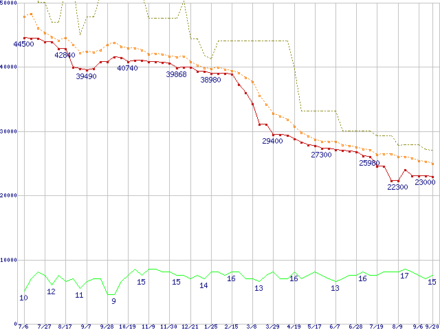 | ST3750640AS (750GB,16MB)の価格推移 | | | (2006年7月6日~2007年9月20日) |