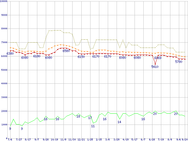 | HDS721616PLA380 (160GB,8MB)の価格推移 | | | (2006年7月6日~2007年9月20日) |