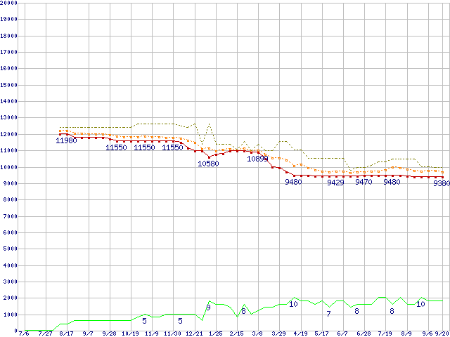 | ST3250620NS (250GB,16MB)の価格推移 | | | (2006年7月6日~2007年9月20日) |