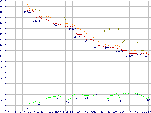 | HDT725040VLAT80 (400GB,8MB)の価格推移 | | | (2006年7月6日~2007年9月20日) |