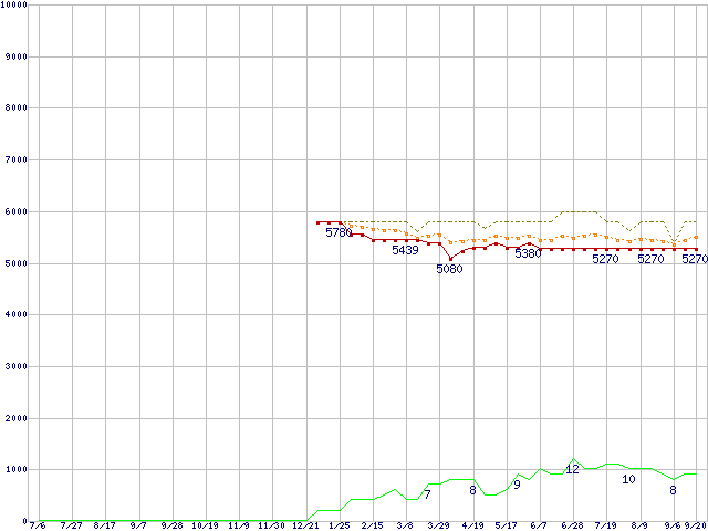 | ST380815AS (80GB,8MB)の価格推移 | | | (2006年7月6日~2007年9月20日) |