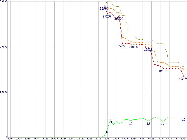 | Athlon 64 X2 5000+ (2.6GHz,L2 512KB×2,TDP65W)の価格推移 | | | (2006年7月7日~2007年9月21日) |