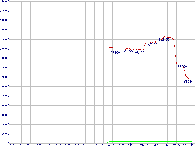 | Opteron 2220 (2.8GHz)の価格推移 | | | (2006年7月7日~2007年9月21日) |