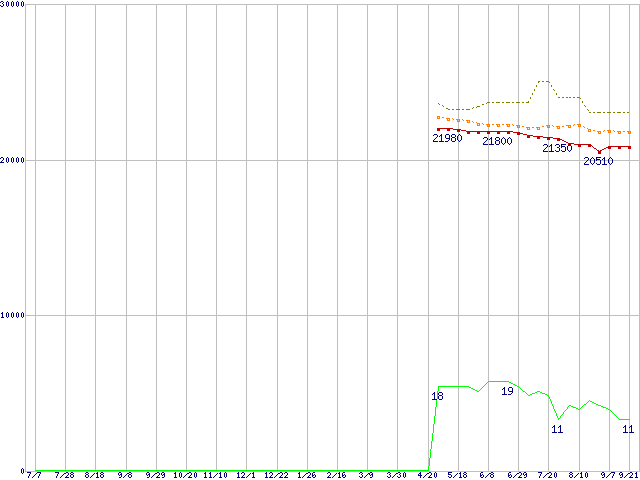 | Core 2 Duo E6320 (1.86GHz,L2 4MB)の価格推移 | | | (2006年7月7日~2007年9月21日) |
