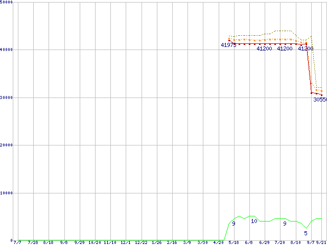 | Core 2 Duo T7500 (2.2GHz,L2 4MB)の価格推移 | | | (2006年7月7日~2007年9月21日) |