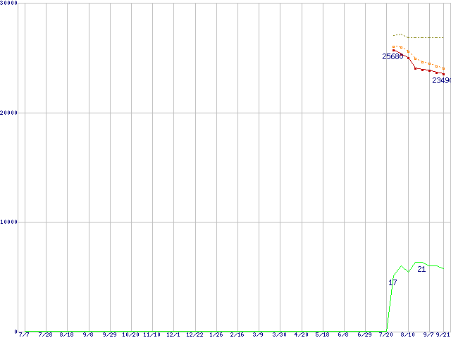 | Core 2 Duo E6750 (2.66GHz,L2 4MB)の価格推移 | | | (2006年7月7日~2007年9月21日) |