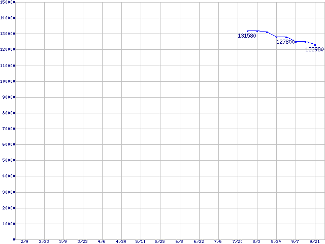 | LGA775 (FSB 1066MHz,L2 4MB×2,Quad Core,EM64T対応)の最安値推移 | | | (2007年2月9日~2007年9月21日) |