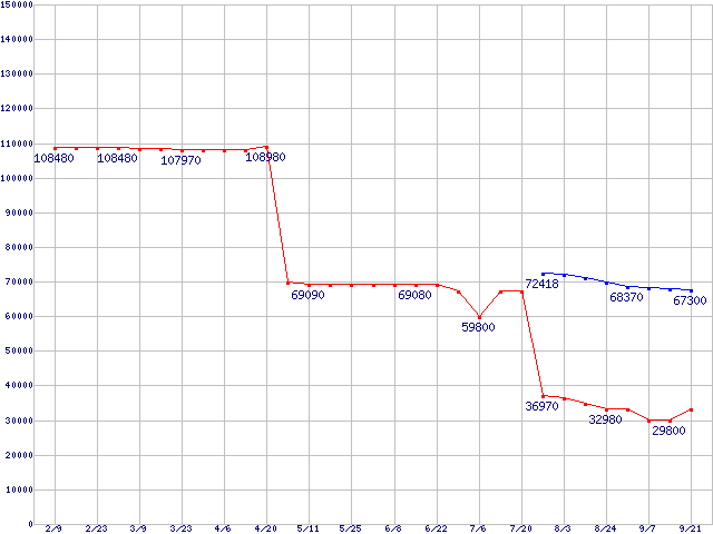 LGA775 (FSB 1333MHz,Dual Core,EM64T対応,TDP 65W)の最安値推移