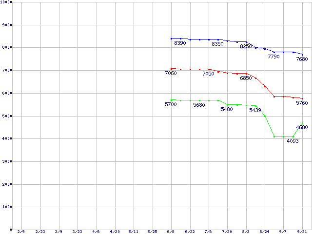 LGA771(FSB 1066MHz,Quad Core,L2 4MB×2)の最安値推移