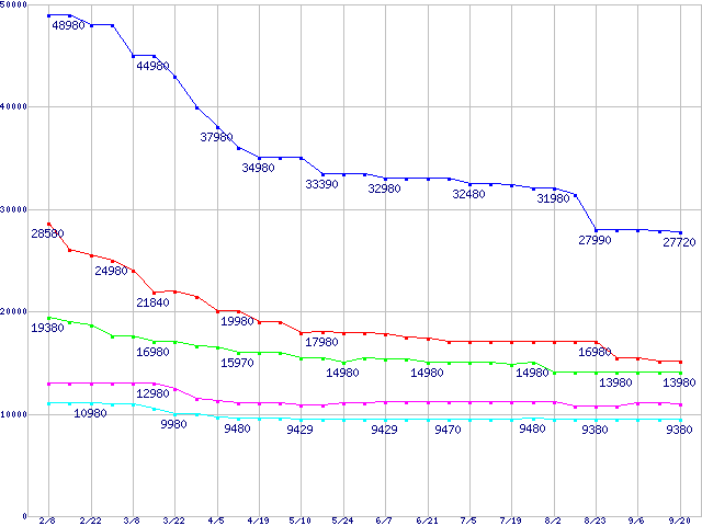 Barracuda 7200.10 (7200rpm,Ultra ATA/100)の最安値推移