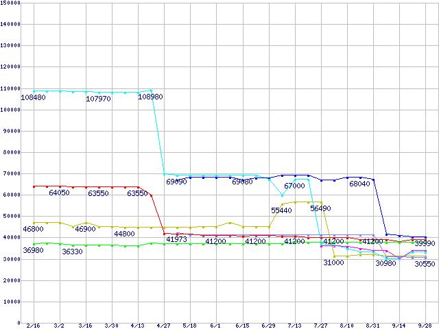 CPU主要製品(最安値3万円~6万円未満)の最安値推移
