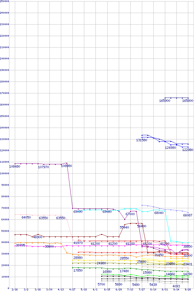 | Intel系CPUの最安値推移 | | | (2007年2月16日~2007年9月28日) |
