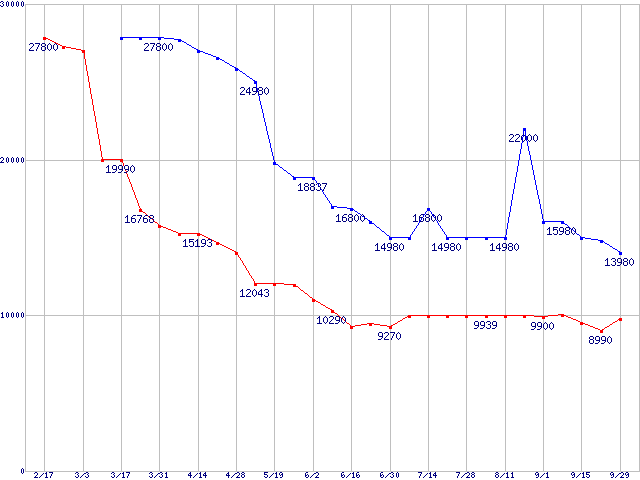 メモリ主要製品の最安値推移