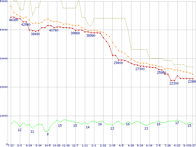 | ST3750640AS (750GB,16MB)の価格推移 | | | (2006年7月13日~2007年9月27日) |