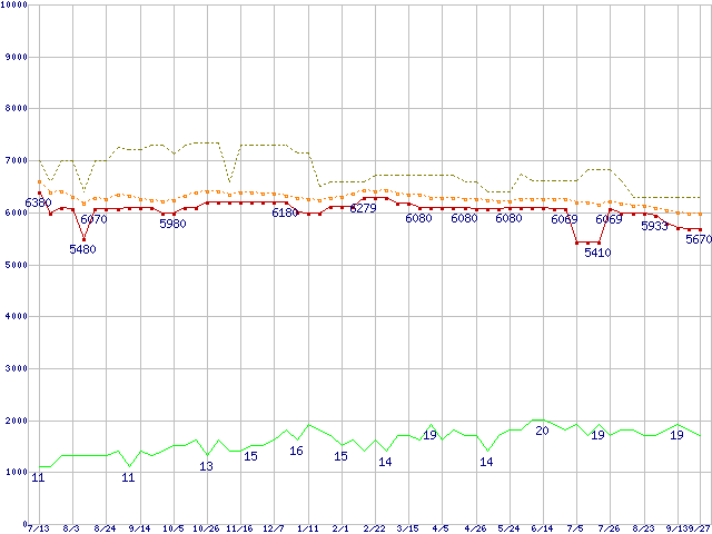 | HDS721616PLAT80 (160GB)の価格推移 | | | (2006年7月13日~2007年9月27日) |