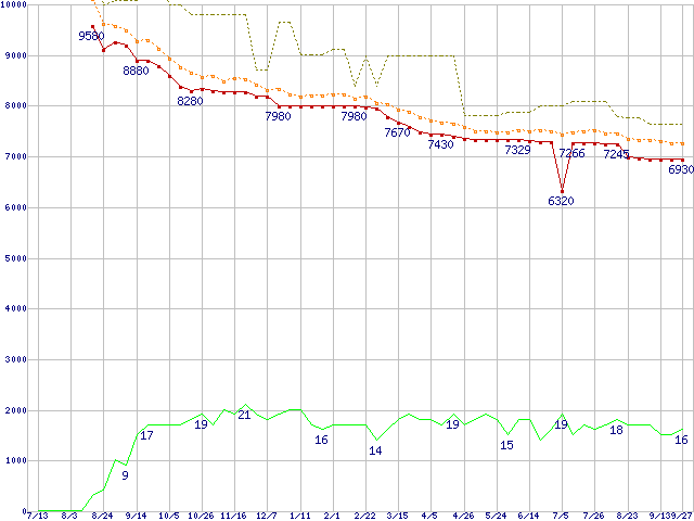 | HDT725025VLAT80 (250GB,8MB)の価格推移 | | | (2006年7月13日~2007年9月27日) |