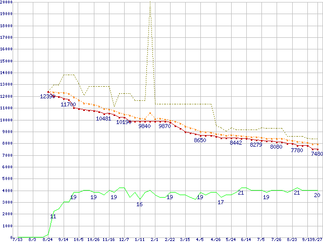 | HDT725032VLAT80 (320GB,8MB)の価格推移 | | | (2006年7月13日~2007年9月27日) |