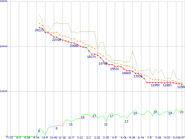 | HDT725050VLAT80 (500GB,8MB)の価格推移 | | | (2006年7月13日~2007年9月27日) |