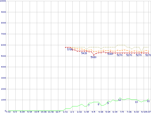 | ST380815AS (80GB,8MB)の価格推移 | | | (2006年7月13日~2007年9月27日) |