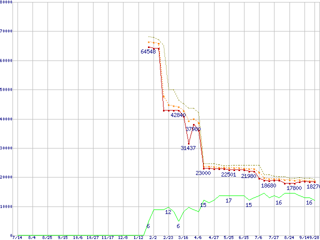 | Athlon 64 X2 5600+ (2.8GHz,L2 1MB×2)の価格推移 | | | (2006年7月14日~2007年9月28日) |
