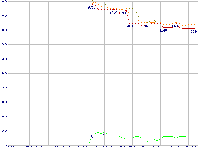 | HD321KJ (320GB,16MB)の価格推移 | | | (2006年7月13日~2007年9月27日) |
