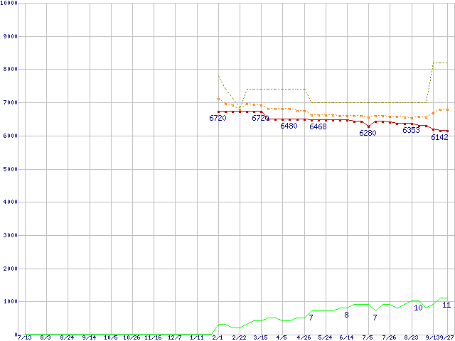 | ST3160815A (160GB,8MB)の価格推移 | | | (2006年7月13日~2007年9月27日) |