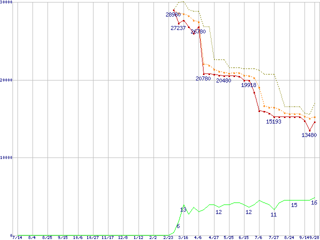 | Athlon 64 X2 5000+ (2.6GHz,L2 512KB×2,TDP65W)の価格推移 | | | (2006年7月14日~2007年9月28日) |