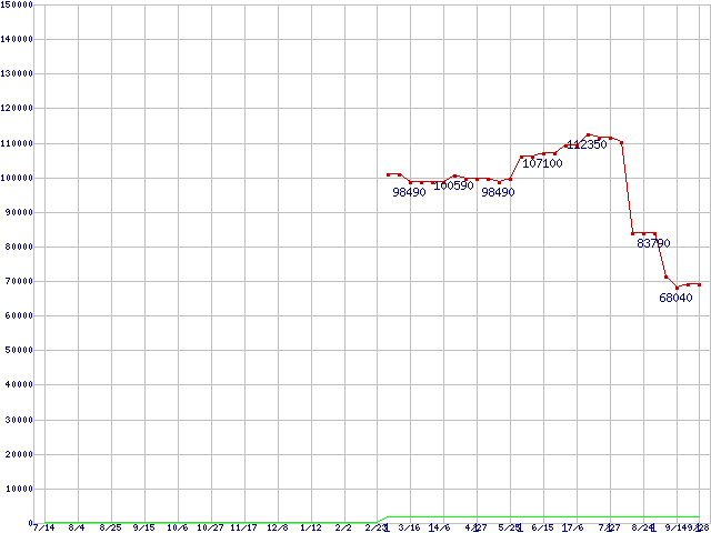 | Opteron 2220 (2.8GHz)の価格推移 | | | (2006年7月14日~2007年9月28日) |