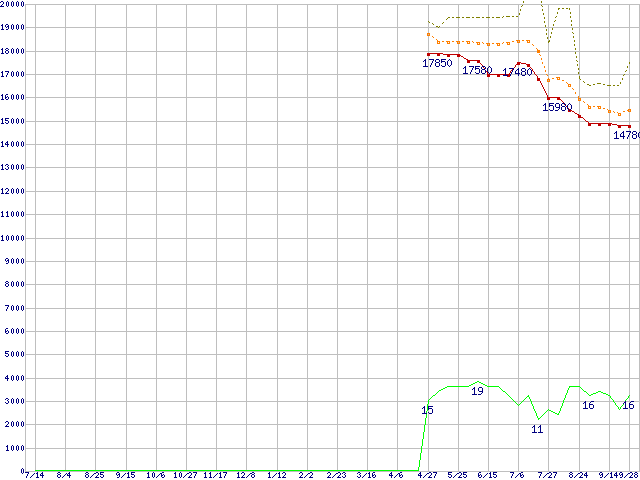 | Core 2 Duo E4400 (2GHz,L2 2MB)の価格推移 | | | (2006年7月14日~2007年9月28日) |