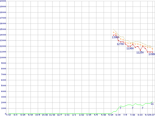 | WD5000AAJB (500GB)の価格推移 | | | (2006年7月13日~2007年9月27日) |