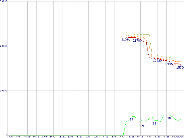 | Athlon 64 X2 5200+ (2.6GHz,L2 1MB×2,TDP65W)の価格推移 | | | (2006年7月14日~2007年9月28日) |