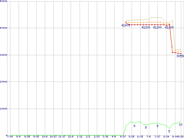 | Core 2 Duo T7500 (2.2GHz,L2 4MB)の価格推移 | | | (2006年7月14日~2007年9月28日) |
