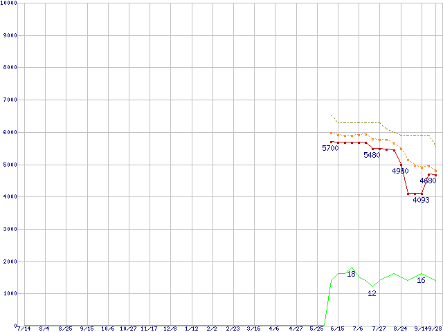 | Celeron 420 (1.6GHz)の価格推移 | | | (2006年7月14日~2007年9月28日) |