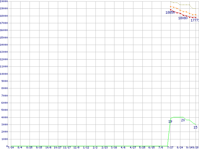 | Core 2 Duo E4500 (2.20GHz,L2 2MB)の価格推移 | | | (2006年7月14日~2007年9月28日) |