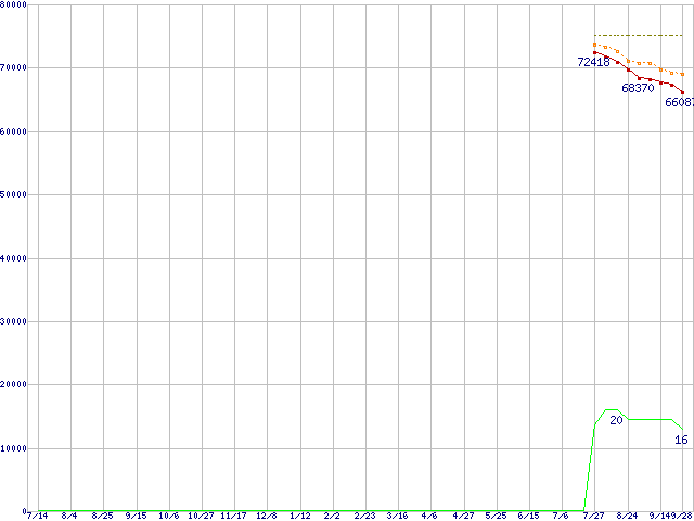 | Core 2 Quad Q6700 (2.66GHz,L2 4MB×2)の価格推移 | | | (2006年7月14日~2007年9月28日) |