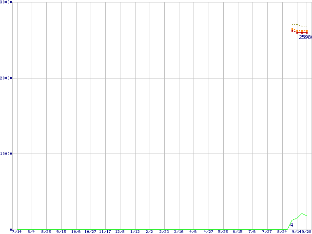 | Core 2 Duo T7250 (2GHz,L2 2MB)の価格推移 | | | (2006年7月14日~2007年9月28日) |
