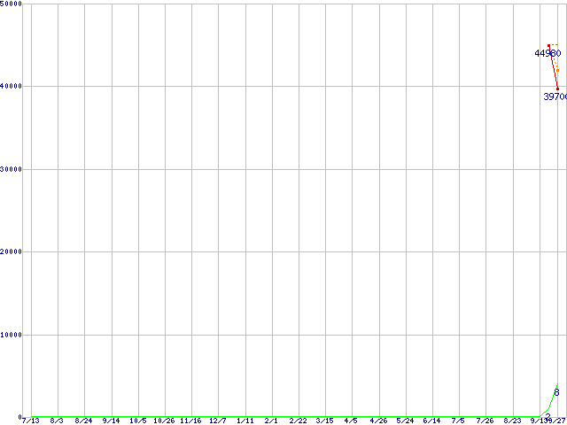 | WD10EACS (1TB)の価格推移 | | | (2006年7月13日~2007年9月27日) |