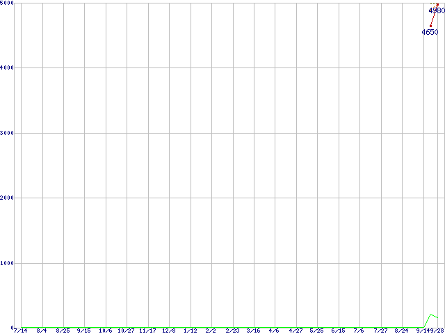 | Sempron LE-1150 (2.0GHz,L2 256KB)の価格推移 | | | (2006年7月14日~2007年9月28日) |