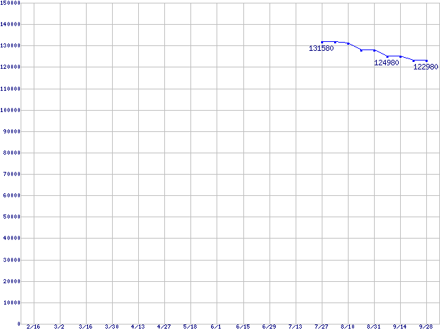 | LGA775 (FSB 1066MHz,L2 4MB×2,Quad Core,EM64T対応)の最安値推移 | | | (2007年2月16日~2007年9月28日) |