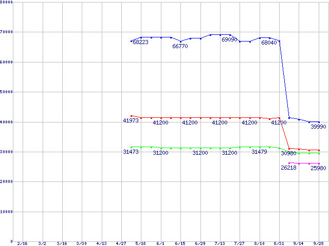| FSB 800MHz対応Core 2 Duo向けSocket (FSB 800MHz,Dual Core,EM64T対応)の最安値推移 | | | (2007年2月16日~2007年9月28日) |