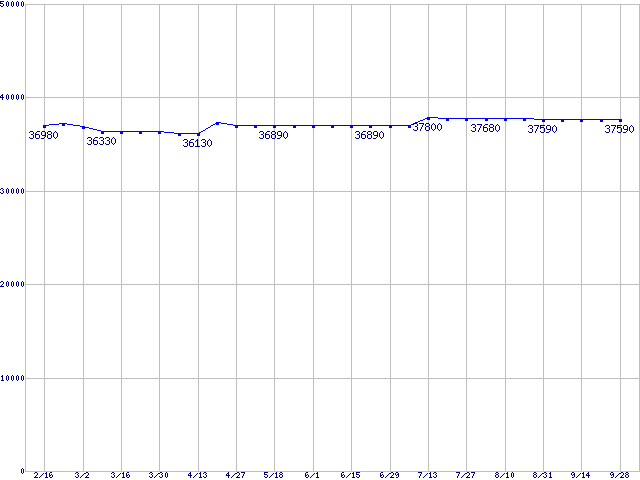 | Core Duo向けSocket 478 (FSB 667MHz,Dual Core,EM64T対応)の最安値推移 | | | (2007年2月16日~2007年9月28日) |