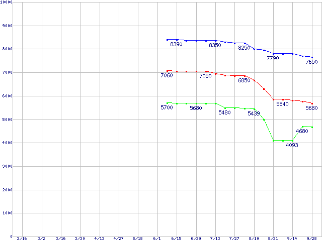 LGA771(FSB 1066MHz,Quad Core,L2 4MB×2)の最安値推移