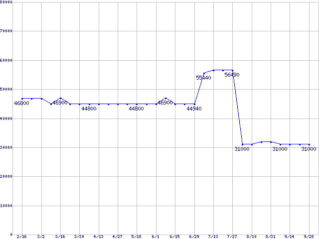 LGA771(FSB 1333MHz,Quad Core,L2 4MB×2,TDP 120W)の最安値推移