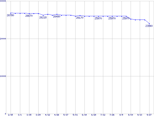 WD Raptor (10000rpm,SATA 1.5Gb/s,16MB,NCQ)の最安値推移