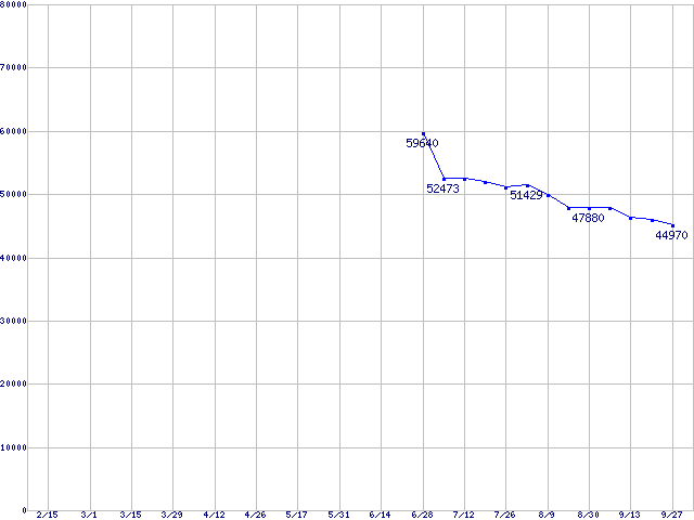 Ultrastar A7K1000 (7200rpm,SATA 3Gb/s)の最安値推移